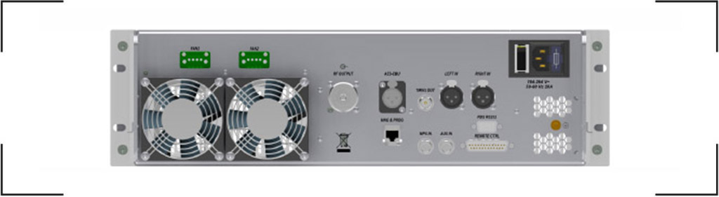 | L and R Inputs: | Stereocoder Option. Impedance > 2KΩ o 600Ω pre- emphasis 0/50/75 μs Input level adjustable from -12dBu up to +12dBu Clipper Δf: ON/OFF |